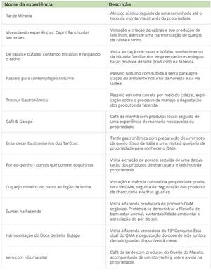 a possibilidade de se hospedar em algumas propriedades do roteiro e realizar atividades típicas do meio rural, como cavalgadas e a ordenha dos animais que fornecem a matéria-prima do produto, sempre orientados por anfitriões quanto aos processos de elaboração da especiaria. Outra opção é se deliciar em restaurantes típicos da tradicional gastronomia, que inclui, ainda, cafés especiais, doces e cachaça artesanal, entre outras atrações, além de participar de atividades pedagógicas vinculadas ao contexto rural.