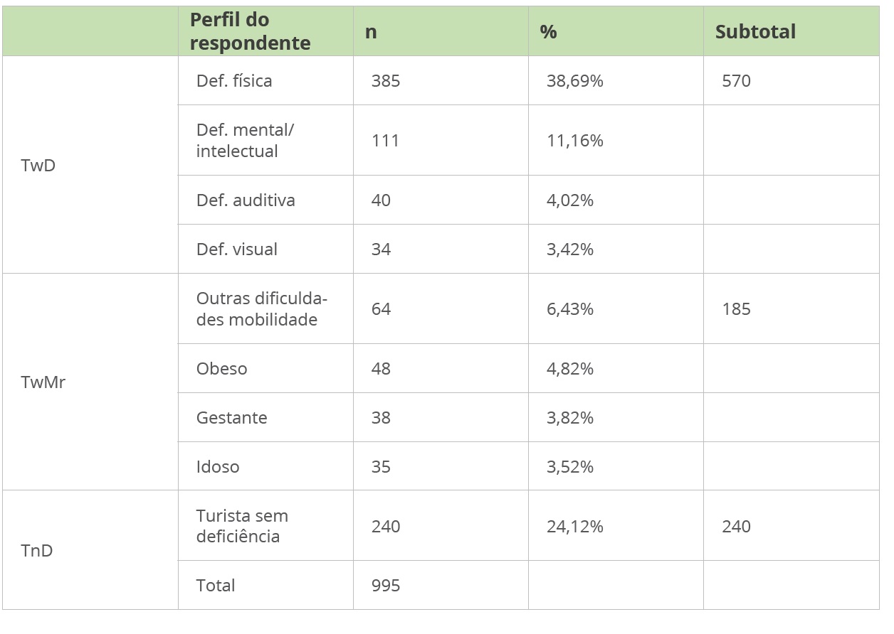 Abstract: The official data regarding the development of the tourist activity shows its importance and reflexes on the economy and social well-being. However, the question is whether the countries are properly prepared to meet all tourism demands with equality, which is why the needs of people with disabilities or reduced mobility are addressed in this study. Accessibility in accommodation facilities is an essential factor, whether by seeking to understand ways to eliminate barriers and/or how to develop an environment that is conducive to tourism activity. Thus, the research aims to analyze the valuation of accessibility in the choice of the accommodation and aspects that may influence the loyalty of the tourist with disabilities or with reduced mobility (TwDMr). The study is characterized as applied descriptive, with a bibliographic survey and the use of a questionnaire with both open and closed questions. It collected results from 995 respondents, serving as a basis for quali-quanti analyses. The results establish that having access to tourist activities positively influences people's quality of life; the importance of accessibility in the purchase of a tourism product or service was proven, highlighting the accessibility of the means of accommodation as the most important element in the TwDMr's choice of tourist destination. It was concluded that meeting the accessibility requirements in the means of accommodation influences the choice of tourist destination, generating value to the enterprise, leading to loyalty, and, as a result, the TwDMr tend to be more loyal when their needs are adequately met.