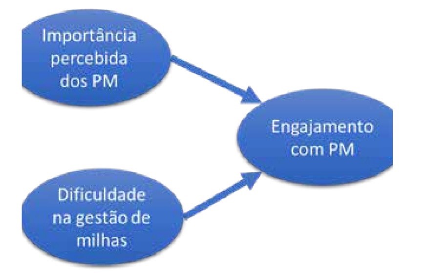 Em segundo lugar, examinamos fatores relevantes que explicam o maior ou menor engajamento de clientes com os PM. Os efeitos das percepções de importância dos PM e da dificuldade na gestão das milhas no engajamento dos clientes foram examinados por meio de técnicas quantitativas. As hipóteses propostas no modelo conceitual foram testadas com uso de modelagem de equações estruturais (Nunkoo et al., 2013; Hair et al., 2019).