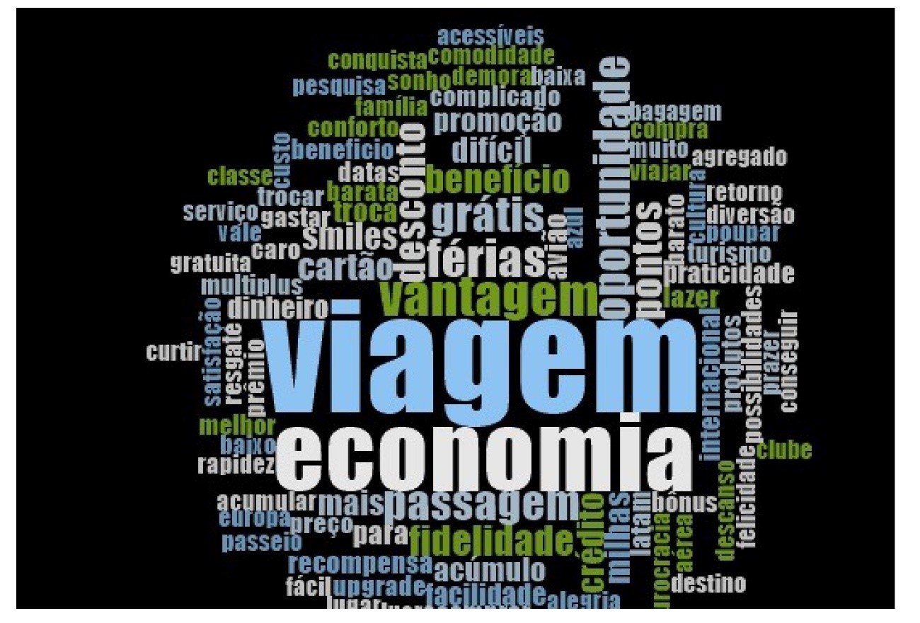 A partir dos resultados obtidos, percebe-se que as associações mais importantes relacionadas às milhas são positivas e diretamente ligadas a ideia de viajar, economizar, ganhar vantagens e recompensas. Menos de 10% das menções foram negativas, indicando desapontamento, o aspecto ilusório dos PM, dificuldades de uso das milhas e sentimentos de confusão. Poucos foram os consumidores que associaram de forma espontânea as milhas a um tipo de moeda ou dinheiro.