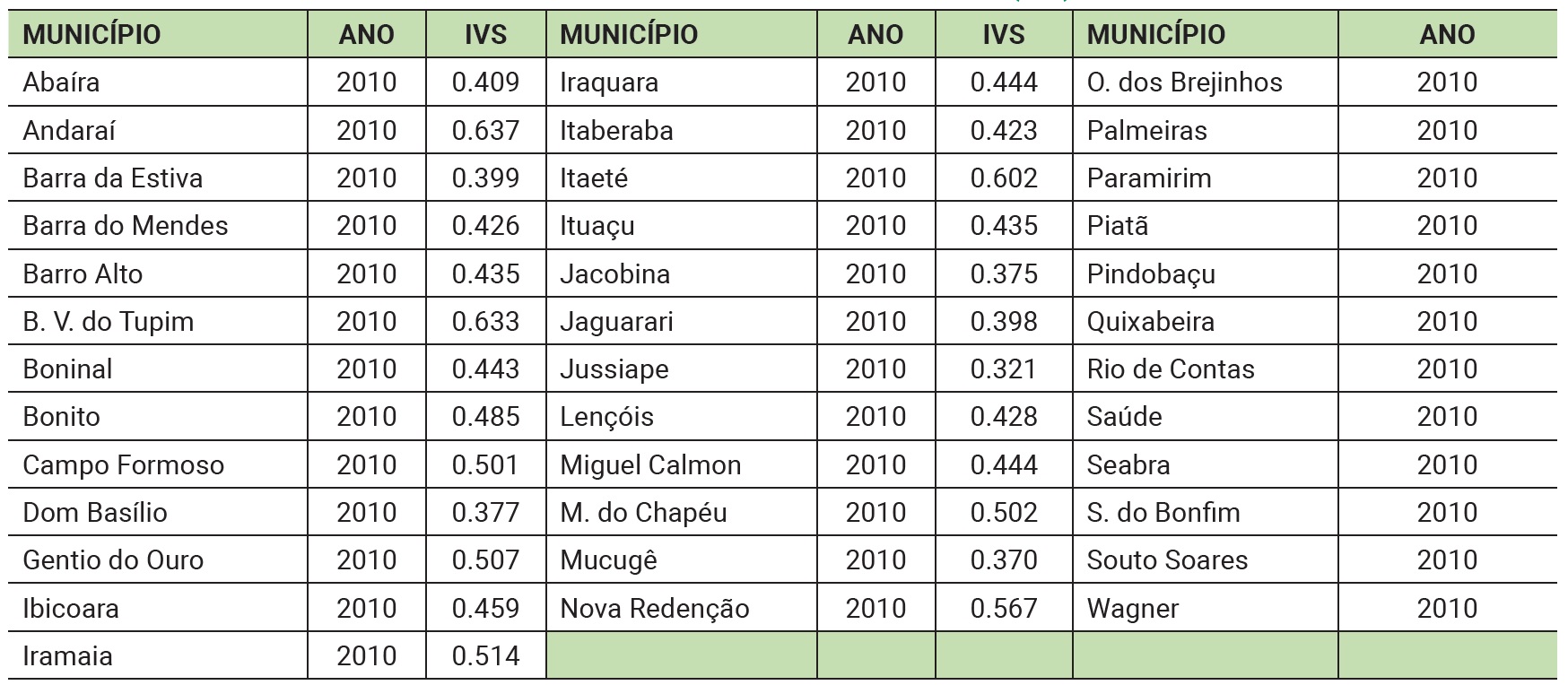 Indicadores de vulnerabilidade social da Chapada Diamantina