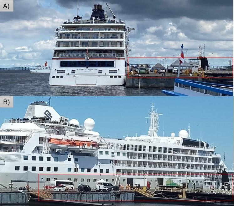Durante a atividade em campo, foi identificado uma dinâmica de implementação de uma melhor infraestrutura restrita às imediações de onde ficam ancorados os navios durante esse período de temporada de cruzeiros em Manaus — essa sazonalidade (“temporada”) dos cruzeiros será descrita nos itens a seguir. Nesse contexto, é importante salientar que os investimentos (realizados pelo Estado) demandados (pelo capital) para tal tendência de tecnificação estão ligados à necessidade de uma maior fluidez das atividades que são exercidas a partir do porto. Particularmente para a dinâmica dos cruzeiros, durante a atracagem, isso quer dizer uma maior facilidade no abastecimento tanto de combustível quanto de suprimentos em geral (alimentares, de limpeza, etc.). Portanto, a cidade de Manaus constitui-se como um nexo importante não só do ponto de vista turístico, mas também logístico para o êxito dos percursos realizados em uma escala macro.