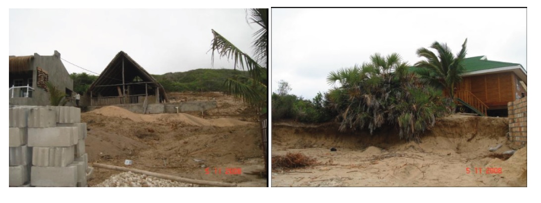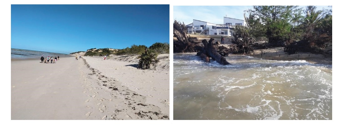 Por via disso, a região de TBT vem sofrendo uma erosão progressiva e evasão das águas do mar, decorrente da destruição de manguezais e das construções massivas ao longo das dunas primárias (Costanza et al., 2014; De la Calle Vaquero, 2019; Hasan et al., 2020; Santos et al., 2021), conforme ilustram as figuras 4 e 5. É importante referir que no ordenamento jurídico Moçambicano há uma legislação que versa sobre a proteção costeira com particular destaque para a Lei de Proteção, Conservação e Uso sustentável da Diversidade Biológica; Regulamento de processo de Avaliação de Impacto Ambiental; Regulamento sobre Auditoria Ambiental; Decreto sobre Inspeção Ambiental e Lei sobre Meio Ambiente.