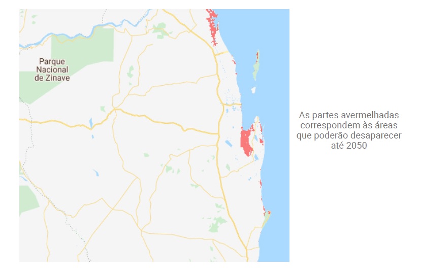 As projeções do 6º Relatório de Avaliação do IPCC (AR6) para o período 2020 – 2040, corroboram com os dados da Climate Central, mostrando uma tendência de subida das águas do mar. Esse cenário afigura-se crítico, uma vez que parte significativa da economia do Município de Inhambane depende do turismo praticado nessa região. As comunidades locais poderão igualmente sofrer com esse fenômeno, quer do ponto de vista de redução de benefícios socioeconômicos, quer do ponto de vista de sobrevivência (Navarro, 2019). A essas potenciais consequências juntam-se, igualmente, as características de dupla exposição das comunidades locais (O’Brien et al., 2004; O´Brien, Karen, Robin M, 2008), caracterizadas por assentamentos subnormais, vulneráveis aos eventos climáticos e da configuração territorial que tendem acelerar o seu processo de alteração na dinâmica do uso da terra, para fins de turistificação (Costanza et al., 2014; Hasan et al., 2020; Müller; Burkhard, 2012; Perevochtchikova et al., 2019; Van de Sand, 2012).