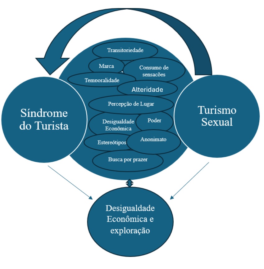 Em síntese, a prática do turismo sexual e a síndrome do turista estão interligadas por todos esses elementos. Cada categoria atua como um elo que reforça a normalização de um consumo descartável e efêmero, e a consolidação de um sistema que promove desigualdades e exploração, conforme demonstrado na Figura 1.
