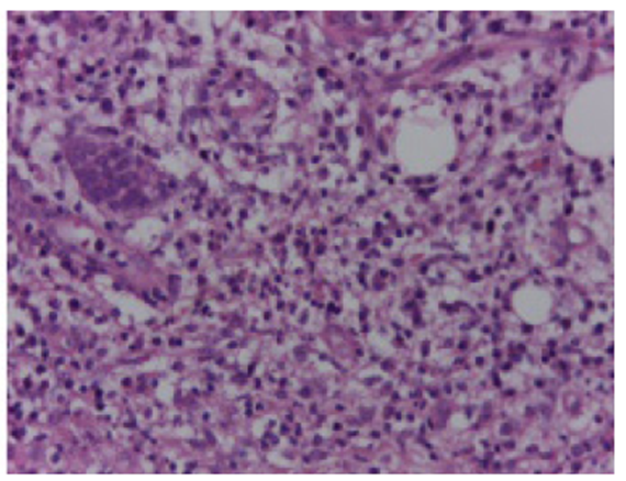 Fue hospitalizada con impresiones diagnósticas de herpes simples, enfermedad de Crohn, granuloma de Majocchi e infección por micobacterias atípicas. Recibió tratamiento empírico con aciclovir para su herpes zóster, pero no se obtuvo mejoría.