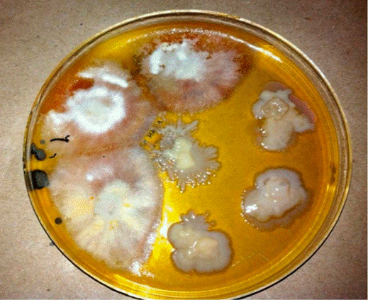 Las muestras deben ser procesadas rápidamente, empleando desde tubos hasta placas de Petri. Los medios más usados son el agar glucosado Sabouraud (figura 2) sin o con antimicrobianos como cloranfenicol y gentamicina para inhibir la contaminación bacteriana, un medio con cicloheximida para inhibir el crecimiento de hongos saprofíticos, excepto si se sospecha que el microrganismo sea Candida no albicans, Scopulariopsis spp, Acremonium spp, Aspergillus spp, Fusarium spp o Scytalidium spp, ya que estos son sensibles a dicho antifúngico. Para las micosis sistémicas el agar infusión cerebro - corazón es el medio indicado de siembra de la muestra 20.