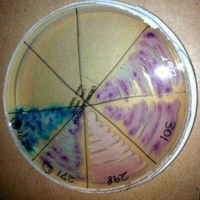 También se han usado medios específicos para las especies de levaduras como el medio CHROMagar Candida que permite diferenciar C. albicans, C. tropicalis, C. krusei, y C. glabrata, en función de los colores que desarrollan en este medio (foto 3).