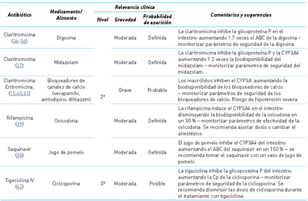A pesar del amplio uso de los antibióticos es complejo establecer esquemas terapéuticos eficaces y seguros, especialmente en pacientes polimedicados. Se estima que más del 40 % de pacientes mayores de 65 años utilizan entre cinco o más medicamentos y 12 % utiliza 10 o más 1-3. En este sentido, es notoria la probabilidad de aparición de posibles interacciones medicamentosas con consecuencias clínicas importantes 2.