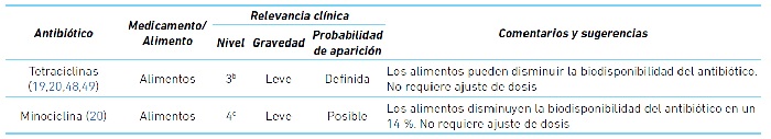 Methods: A search in PubMed / MedLine and Embase was made for articles in English and Spanish, full-text access, without a cut-off date, in humans. The clinical relevance was established based on the probability of occurrence and the severity of the interaction. The results were oriented in the antibiotics commercialized in Colombia, according to the database of Invima.