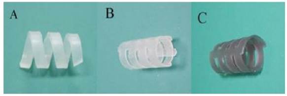 Zhu et al. diseñan tres stent bioabsorbibles: uno helicoidal, otro tubular y otro tubular con elución de mitomicina C (MMC), los cuales son comparados con un stent tubular comercial de silicona empleando un modelo animal de 25 conejos. Los stent son fabricados en un copolímero de ácido poli-L-láctico (PLLA) y policaprolactona (PCL). El estudio sugiere que los mejores resultados son los del stent con liberación de MMC, puesto que presenta el menor atrapamiento de moco y menor porcentaje de obstrucción de las vías respiratorias. Luego de 12 semanas de seguimiento la estenosis traqueal de los stents biobsorbibles con liberación MMC fue la mitad respecto a los de silicona 14 (figura 2).