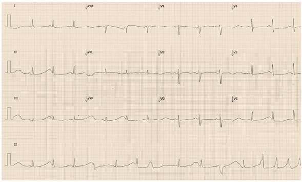 Se trataba de una paciente de 77 años, procedente de área rural quien fue remitida en malas condiciones a hospital de tercer nivel de complejidad, por presentar cuadro clíni co de hipocalemia refractaria y varios episodios de taquicardia ventricular polimórfica tipo torsade de pointes, las cuales requirieron desfibrilación en diferentes oportunidades.