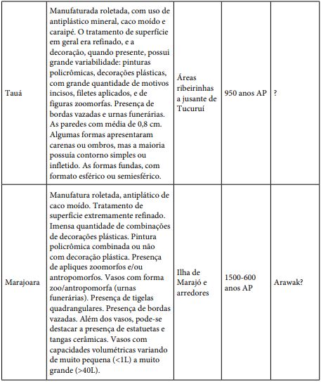 As ocupações ceramistas da bacia do baixo Amazonas são as mais antigas da América do Sul, com datas ultrapassando 7 mil anos AP para o Sambaqui de Taperinha (Roosevelt et al., 1991), 6 mil anos AP para o litoral paraense (Roosevelt, 1995), 4 mil anos AP para o interior maranhense (Almeida, 2013b) e 3 mil anos AP para o interflúvio Xingu-Tapajós (Garcia, 2016).