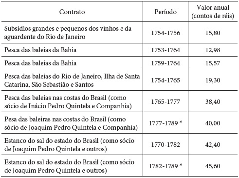 Embora tenha sido personagem central na atividade da pesca das baleias durante mais de 30 anos, o que parece emergir de sua história é um “lobo dos salões” antes que um “lobo do mar”. Sua carreira, nesse sentido, ilustra as possibilidades de ação no limitado mundo dos grandes contratadores, em que o acesso direto aos principais canais decisórios parece ter sido relevante. Para ingressar e se manter no rentável mercado de contratos régios, era necessário não só capital econômico, mas também um sólido capital social, tanto para a constituição das malhas de fiadores, procuradores e caixas, quanto para influenciar as autoridades durante o processo de arrematação e depois, em questões como a cobrança de dívidas e prorrogação de prazos, entre outras.2