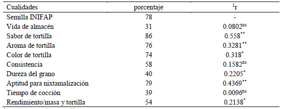 Dentro de las características perceptuales que favorecen el uso de la semilla mejorada INIFAP, sobresalen el sabor de la tortilla y la aptitud para nixtamalización, las cuales son determinantes en el uso regional de la semilla de origen INIFAP (Cuadro 4).