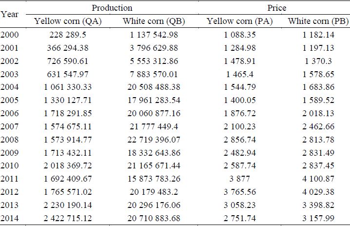 Keywords: corn, price ratio, ratio of quantities, substitution elasticity.