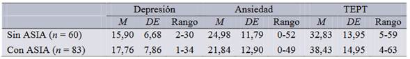 El que los adolescentes con antecedentes de ASIA presenten similar puntuación en depresión y ansiedad que aquellos sin antecedentes puede explicarse a partir de los resultados de estudios recientes que muestran que ambos trastornos son comunes tanto en la población general (Balazs et al., 2012) como en personas que han sufrido abusos sexuales (Saywitz et al., 2000).