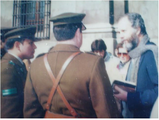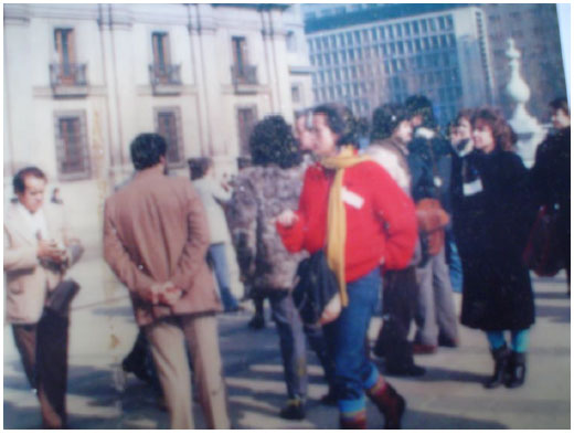 El 24 de junio de 1986, el directorio del Colegio, acompañado por aproximadamente 40 colegas y alumnos de la carrera de psicología, marchó a La Moneda (ver Figura 3). Una vez ahí, el Presidente y Vicepresidente del Colegio de Psicólogos (Alfonso Luco y Domingo Asún respectivamente) entregaron una carta al Ministro del Interior (ver Figura 4) en relación a los allanamientos masivos a poblaciones populares.