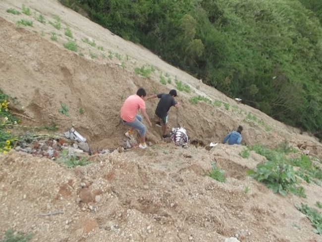 En el campamento las actividades en espacios naturales se constituyen para niño/a como posibilidades de disfrutar del tiempo libre en conjunto con sus familias y amigos/as. Este es un valor que reconocen explícitamente, situando su bienestar en las experiencias de juego y convivencia que se desplazan a los entornos cotidianos de su vida en el barrio. El acceso a la quebrada en el campamento es uno de los lugares al aire libre favoritos para niños/as, que, si bien es de difícil entrada, en su recorrido destacan las posibilidades que tienen de saltar y ejercitarse. En la figura 5 se muestra cómo niños/as transitan por la quebrada. En la siguiente cita se ejemplifica la relación del bienestar con el tiempo libre en la quebrada de su barrio.