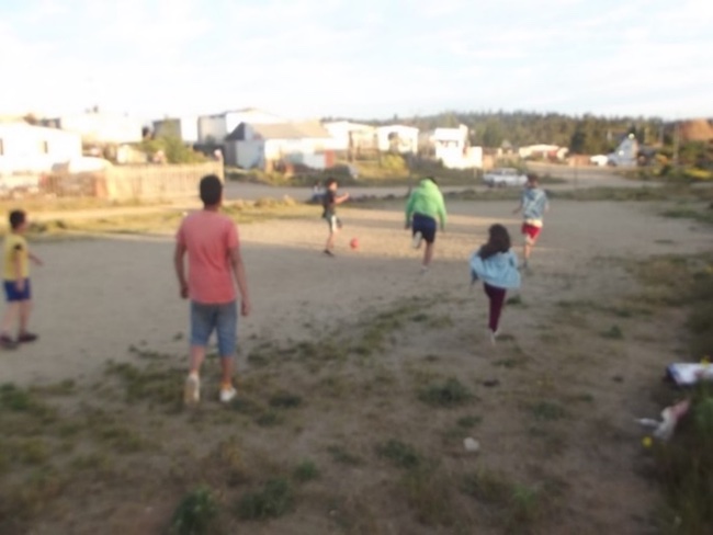 Hacer deporte es otra de las actividades con mayor uso del tiempo libre en niños/as asociada al bienestar relacional y colectivo. De hecho, el taller de deporte facilitado por las monitoras de la biblioteca popular es el que recibe más reconocimiento entre niños/as como se muestra en las siguientes citas. Así también, la figura 6 muestra cómo en la cancha niños/as juegan fútbol durante el taller de deportes, lo que ocurre también fuera del taller cuando se encuentran espontáneamente y comienzan a jugar con la pelota.