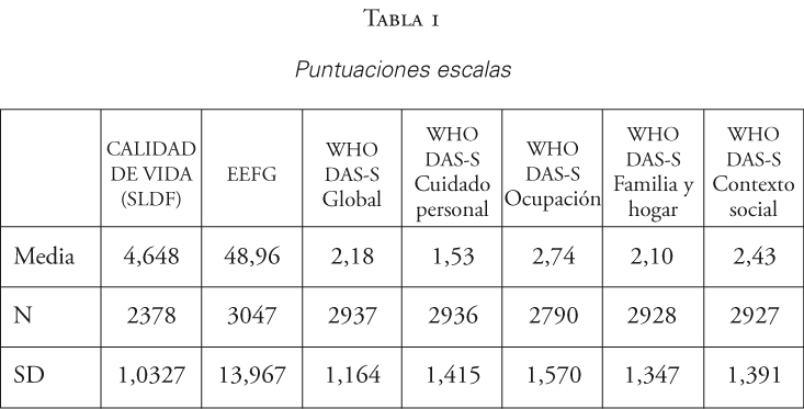 Los principales resultados descriptivos de las puntuaciones en cada una de las escalas se observan en la tabla 1.