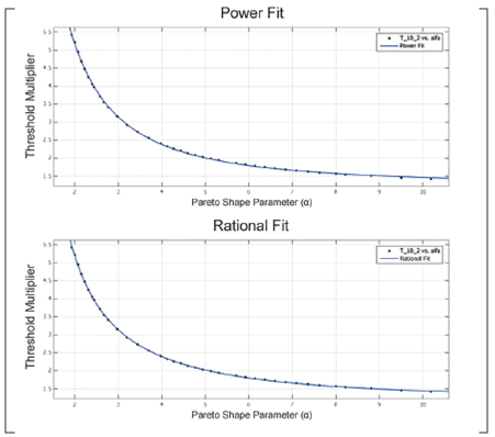 The T values shown in Figure 3 can be applied when the Pareto clutter corresponds to any of the shape parameters included in Table 1. However, it's necessary to generalize the results for the entire region of possible occurrences of the parameter (2 < α < 10). Thus, a Testimate will be available for any statistical condition of the Pareto clutter.