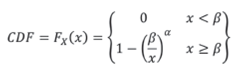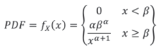 The PDF and the CDF (Cumulative Distribution Function) of the Pareto distribution are given below: