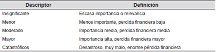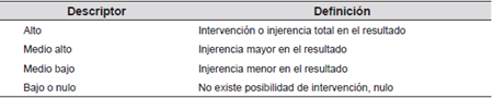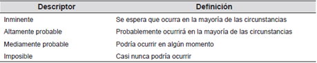 Para las categorías probabilidad de ocurrencia, consecuencias o impacto y grado de control o influencia se estimaron las medidas cualitativas, con el objetivo de realizar un ordenamiento más detallado y entendible para quien contestara la encuesta. (Ver Tablas 8, 9 y 10).