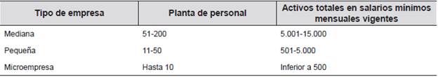 En Colombia, la legislación acerca de las Pymes está enmarcada en la Ley 905 de 2004 y determinada por solo dos variables: Activos totales y el número de empleados, sin que la actividad comercial incida sobre esta conceptualización, a diferencia de Estados Unidos y Europa donde el sector es la variable que determina la categorización de este tipo de grupo económico. (Ver Tabla 4).
