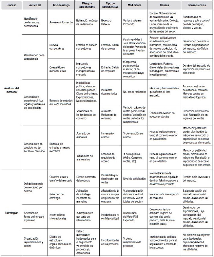 Design of a model of risk management in the international marketing of goods in SMES: a case study for the SMES in Cartagena- Colombia