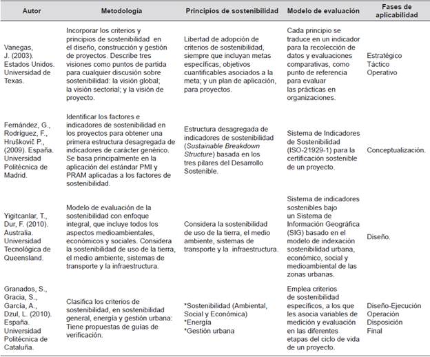 La inclusión del tema de sostenibilidad en la disciplina de gerencia de proyectos, puede ser abordada de diferentes maneras, siguiendo a diferentes autores que han realizado propuestas al respecto, como se aprecia en la Tabla 2.