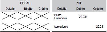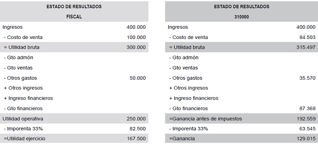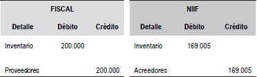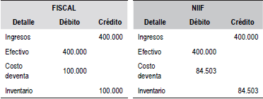 Al contabilizar el ingreso fiscal y bajo NIIF se puede evidenciar que no se presenta ninguna diferencia, pero en el registro de la partida de costo de venta, presenta una disimilitud en las cifras, dado que fiscalmente se reconoce el costo por el valor de la compra, pero bajo NIIF para Pymes difiere dado al cálculo del valor presente al cual se somete el inventario.