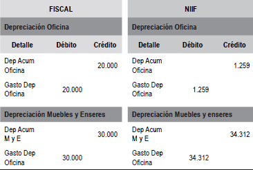 En el artículo 137 del E.T. se presentan las limitaciones para la deducción en la depreciación fiscal. Aunque inicialmente la norma menciona que el gasto por depreciación fiscal será igual al marco contable, después preciso que éste, no podrá ser superior a unos límites establecidos por tasas. Esto conlleva a que la depreciación fiscal sea menor o igual -nunca podrá ser mayor- a la depreciación contable. Cuando la depreciación fiscal sea menor dejará como resultado un impuesto diferido activo.12