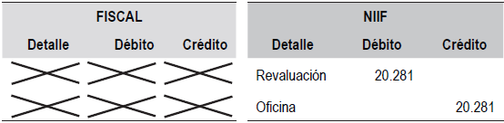 El ajuste por revalorización de la propiedad, planta y equipo, en este caso de la Oficina, resulta de restarle el ajuste por depreciación al valor de compra, menos el importe revaluado.