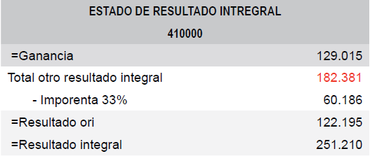 El estado de resultado integral, muestra tanto las ganancias financieras realizadas, como las no realizadas. Lo que revela una información más completa de la variación del activo, por la actividad operacional y financiera de la empresa, que no proviene de movimientos del pasivo, ni de movimientos del capital. Por lo tanto, solo provienen de movimientos del resultado, y del ORI.