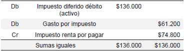 El ejemplo muestra como en los tres primeros años el activo por impuesto diferido acumula un valor de $122.400, en los años 2019 y 2020, se empieza a diferir el valor acumulado hasta quedar en cero (Ver tabla 3). En términos financieros, el impuesto diferido permite analizar las obligaciones o derechos fiscales por pagar o por cobrar en períodos futuros, lo que permite proyectar los flujos de efectivo presupuestados, para la planeación tributaria.