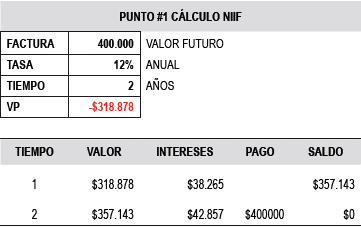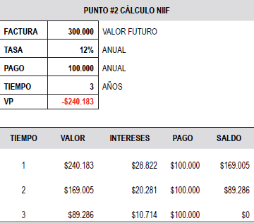Se ajusta bajo NIIF para Pymes los intereses generados en el primer año por cada partida, dado al cálculo del valor presente de la propiedad, planta y equipo e inventarios.