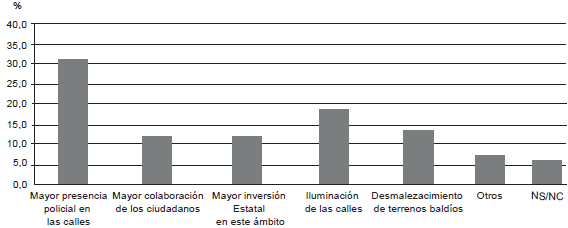 Las ciudades en general, son fuentes casi inagotables de lenguaje simbólico, que influyen en mayor o menor medida en los receptores. Estos aspectos quedan de manifiesto en un trabajo realizado en el año 2012, en la ciudad de Resistencia, capital de la Provincia del Chaco, localizada en el cuadrante nordeste de la República Argentina, que, con sus aproximadamente 300.000 habitantes, es considerada una ciudad intermedia. En la investigación mencionada, los vecinos de la ciudad fueron consultados, mediante encuestas, acerca de sus experiencias urbanas en relación con la seguridad pública y sobre los factores que mejorarían dichas experiencias en las calles de la ciudad. Los resultados se pueden evidenciar en la Figura 2.