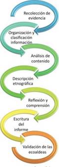 El ciclo de análisis e interpretación inició con la recolección de evidencia documental y empírica. Una vez recolectada la información se procedió a la organización y clasificación de la misma de acuerdo con la fuente, fuera primaria (empírica) o secundaria (documental), y al formato de registro de los datos (Ver Figura 2).