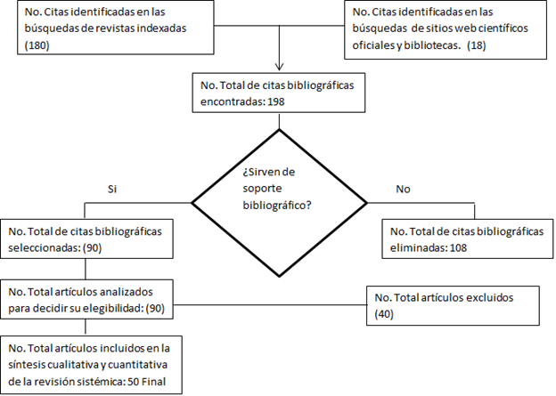 Se tuvieron en cuenta artículos de estudios científicos sin tener restricción con el idioma de publicación, utilizando búsquedas bibliográficas en las siguientes bases de datos donde se hacen publicaciones de revistas indexadas por Colciencias por una combinación de palabras clave tanto en inglés como en español que facilitaran su ubicación en bases de datos electrónicas como: PubMed, Science direct, Scima-go, Zotero, Ebsco, Embase, Central, Scielo, Adicionalmente se consultó en Bibliotecas especializadas, búsqueda manual de Libros, revistas científicas o literatura Gris, Listas de referencias y citas de artículos y páginas Web oficiales de Colombia y otros países, entre ellas, la organización mundial de la Salud, Ministerio de Salud en Colombia, la Administración de alimentos y medicamentos - FDA de Estados Unidos y muchas otras más.