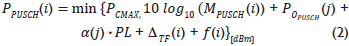El ajuste de la potencia de transmisión del UE para la transmisión del Canal Físico Compartido en el Enlace de Subida (PUSCH, Physical Uplink Shared Channel) PPUSCH en la subtrama i se define por la ecuación 2:
