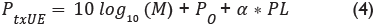 Utilizando el procedimiento estandarizado por el 3GPP para el establecimiento de la potencia de transmisión, se obtiene la ecuación 4 para la implementación del control de potencia con lazo abierto.