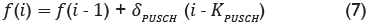 Para determinar el valor del factor de compensación dinámica f se utiliza la ecuación 7, estandarizada por el 3GPP para PUSCH en la sub-trama i.
