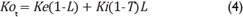 donde Ke es el costo del capital propio o costo de oportunidad3L, es el nivel de endeudamiento que resulta de dividir la deuda con costo explícito entre el activo neto operacional ANO y Ki e s el costo de la deuda. Sin embargo, dado que los intereses son deducibles de la base gravable de la empresa, el costo de la deuda después de impuestos es el que interesa aquí y este es igual a Ki(1-T) donde T representa la tasa de impuestos de la empresa.