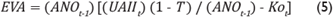 donde (UAIIt ) (1 - T) / (ANOt-1 ) es el rendimiento después de impuestos del activo neto operacional y las demás variables están definidas como antes. (En esta expresión, a la diferencia [(UAIIt ) (1 - T) / (ANOt-1 ) - Kot ] entre el rendimiento después de impuestos del activo neto operacional y el costo de capital medio ponderado Kot se le conoce como el porcentaje de utilidad o pérdida residual).