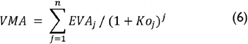 Finalmente, al traer a valor presente del EVA (durante un periodo de estudio) se obtiene el valor de mercado agregado VMA del período evaluado. En otras palabras, el VMA de un período evaluado de n años se puede expresar como: