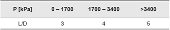 Como consecuencia de la primera suposición, se asume que las gotas de líquido (o burbujas de gas) realizan movimientos lineales; esta segunda suposición puede acercarse a la realidad si se instalan platos perforados dentro del separador horizontal. Con base en estos estudios preliminares y con gran contribución empírica, se desarrollaron las variables de diseño convencional, fundamentadas en la teoría de asentamiento de gota e incluyendo como criterio principal de diseño el factor empírico (K) de Souders y Brown (1934); para el que varios autores (GPSA s/f; Laleh, Svrcek, y Monnery 2012; Svrcek y Monnery 1993) concuerdan en que tanto K como la relación longitud/diámetro (L/D) del separador, son altamente dependientes de la presión de operación (Tabla 1 y Tabla 2).