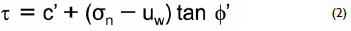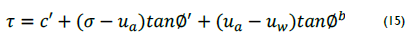 Para la determinación de la resistencia al corte de los suelos, Fredlund et al. (1978), proponen considerar la parcela de succión matricial (ua-uw ), expresando la resistencia como se presenta en la Ecuación 15: