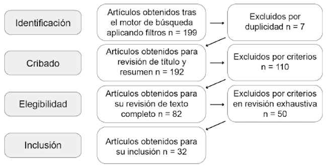 Los filtros utilizados fueron rango de tiempo en años (2014-2019), artículos de revistas arbitradas, idioma inglés y español, disciplina y búsqueda por palabras clave. Los trabajos incluidos tuvieron que cumplir con los criterios de ser publicaciones originales y arbitradas en inglés o español con temática afín a las ciencias sociales, de carácter cuantitativo causal con diseños transversales, empíricos de resultados y que se hayan publicado entre los años 2014 y abril de 2019. Otra característica es que la información fuera obtenida a través de la percepción u observación de los adolescentes estudiantes y no de otros actores involucrados, como pueden ser los maestros o padres, pues, al tratarse de aspectos contextuales, la información debía ser valorada por el afectado en función a la investigación, esto de acuerdo a lo que Kriscautzky y Ferreiro (2014) plantean al respecto de la fiabilidad de obtención de datos.