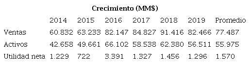 Los indicadores de crecimiento presentaron diferentes tendencias en el sexenio: las ventas crecieron hasta el penúltimo año, para finalmente caer en el 2019; los activos aumentaron hasta el 2016, y luego fluctuaron; simultáneamente las utilidades netas ondearon. Los promedios de las ventas, activos y utilidades netas fueron de $77.487 MM, $55.975 MM y $1.570 MM respectivamente (Tabla 4).